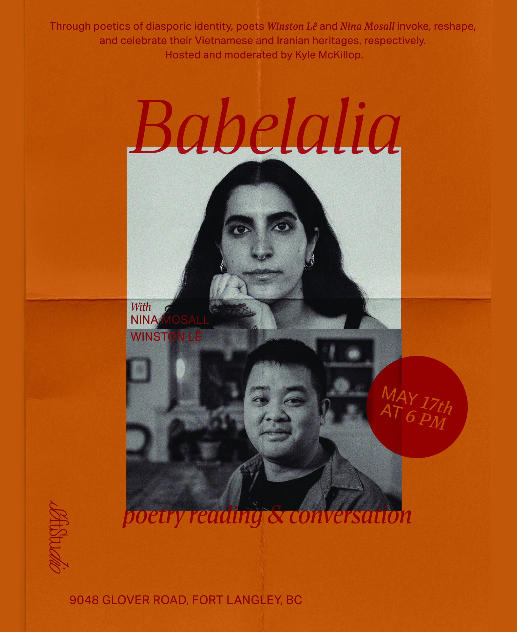 Through poetics of diasporic identity, poets Winston Lê and Nina Mosall invoked, reshaped, and celebrated their Vietnamese and Iranian heritages, respectively. Hosted and moderated by poet and educator, Kyle McKillop. This event was the last in a  series of soft launches that I (Winston) organized to launch my forthcoming poetry chapbook, Thhhhh in May. This grant was to solely fund the Langley launch happening on May 17th, 2025.