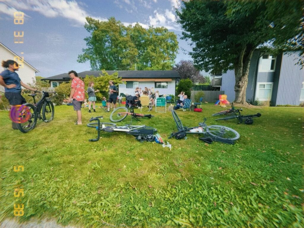 We hosted our event on the from yard of my house in Yarrow. Our street is a common bike route to access the popular Rotary Trail in Chilliwack, so it was easy to invite cyclists to stop in for a treat as they carried on their ride. We started the day with a 9:30 am road ride for people who wanted to get in some km’s prior to the BBQ. At 1:30 people began to roll up to the yard. We brought out the food and the fun began!
