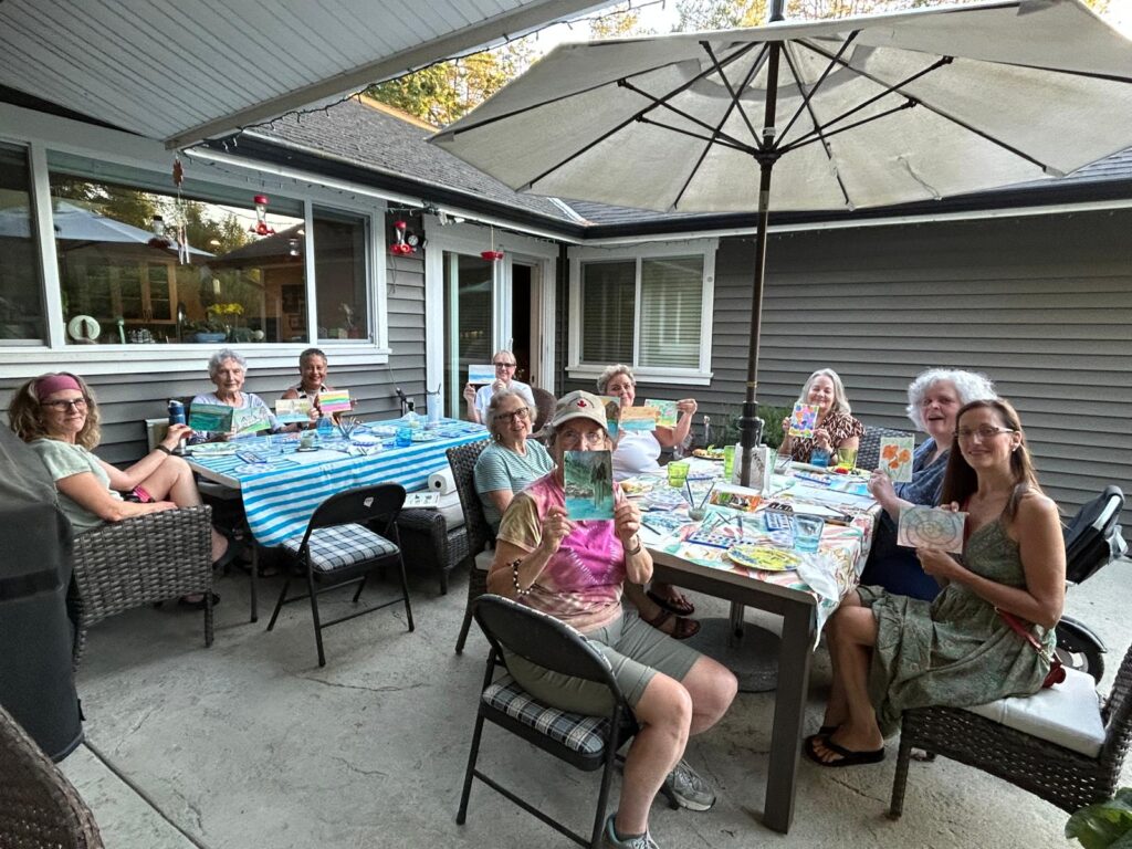 Many stated a strong community was important. We wanted this group be inclusive, an open door for all to come and enjoy an eveningl doing a fun activity, building social connections, a strong sense of community and a sense of wellbeing and joy. How often we would meet proved to be more challenging. Some felt that the meetings should be weekly, while others felt the gatherings would be more successful if held only once per month with a different host location and activity for each meeting. After considerable discussion the decision was made to try the once per month social activity at rotating locations and hosts.