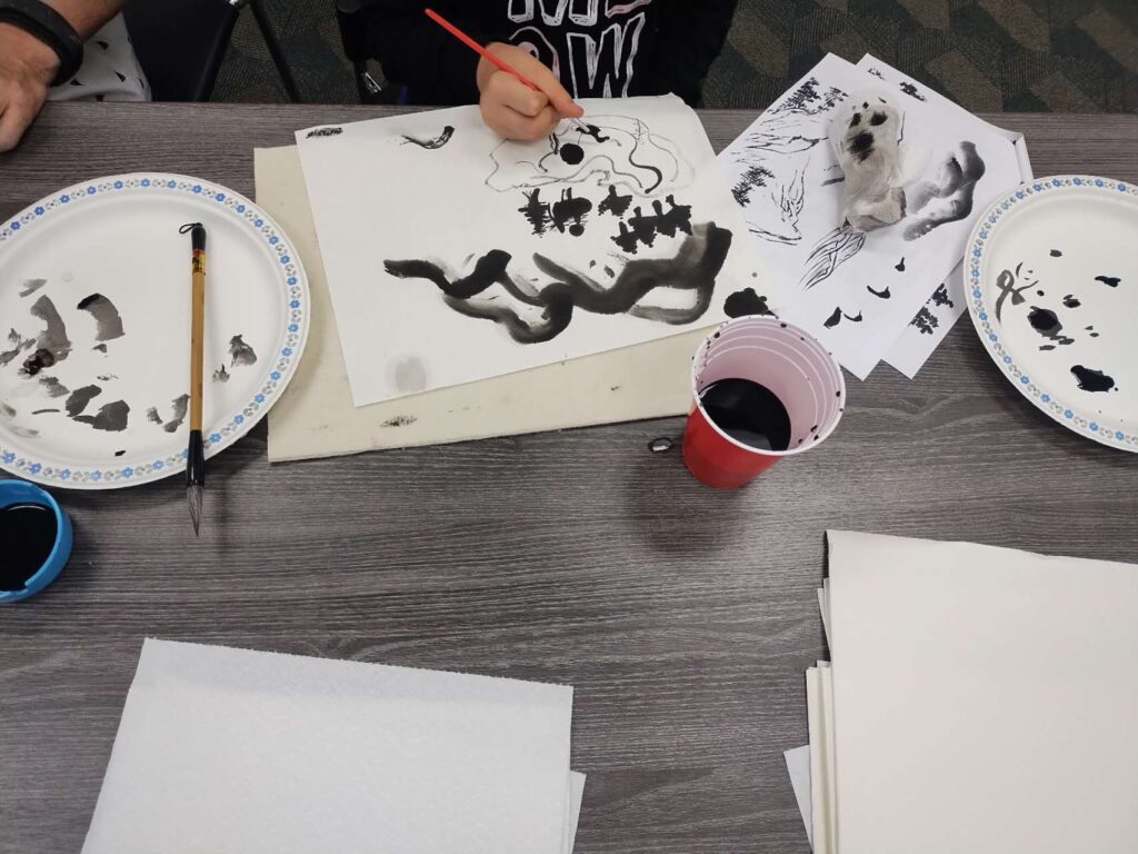 The workshop began with a short introduction and a discussion on the differences between Western landscape art and Chinese painting. Participants were curious and engaged, offering thoughtful comparisons from their own cultural backgrounds. We then introduced Qi Baishi, one of the most influential Chinese painters, and his famous motto “Paint what you know.” This helped participants understand that Chinese art values not only realistic representation, but also mood, spirit, and personal expression.