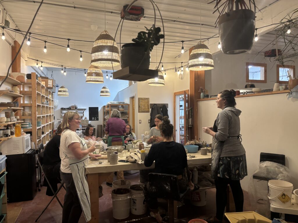 The second class welcomed a group of adults from the community. Using simple handbuilding techniques, each participant made their own tumbler. As they worked, the studio naturally filled with conversations—stories, reflections, and the kind of easy dialogue that happens when hands are busy and minds are relaxed. People who arrived as strangers connected through the shared process of making something with care.