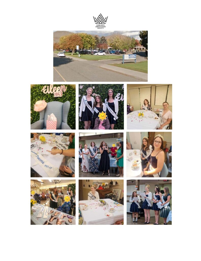 We were thrilled to be able to participate in a Tea Party that we co-hosted with Overlander Long Term Care Centre. We put together cheer bags filled with goodies for the residents in attendance. We discovered during the planning process, that one of the residents had participated in the Ambassador Program back in 1953!!! It then turned into a tea party in her honour! Alumni were invited, we had mementos and photos and everyone enjoyed hearing about resident Eileen’s experience! We had a photo area set up with our current Ambassador Team and other program alumni that attended that the residents loved! Photos were taken and then printed for residents to have in their rooms. In the New Year, we will be planning more visits to spend some time with residents. We’re looking forward to socializing and learning more about our Kamloops seniors. We hope to continue our youth/senior relationships with the Overlander Care Centre.