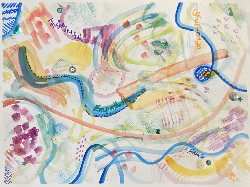The workshop began with some art games/activities, to get everyone feeling comfortable, and to start a no-pressure, fun, and silly art activity. When you’re able to show there’s no right or wrong in art, it allows us to feel more comfortable to express ourselves, to play and to have fun with the medium; and also to worry less about the final product and simply enjoy the process of creating! We then had an open art project with basic guidelines, but open-ended, so they could explore their own ideas with minimal direction. While participating in this project, we had open discussions. I have a set of cards with interactive questions that we would rotate through to share about ourselves to one another or to discover things about ourselves we maybe didn’t realize. At times, I’d allow the youth to ask me questions they wanted to ask me, or bring up topics for group discussion. Sometimes it would lead to further discussion amongst the group, other times we’d get everyone to have a turn to speak, then we’d pick the next one. The main goal was to open up to one another, remind ourselves that we’re all not that different, and we all have similarities, but also to help build confidence and support in ourselves individually, while also as a collective group.