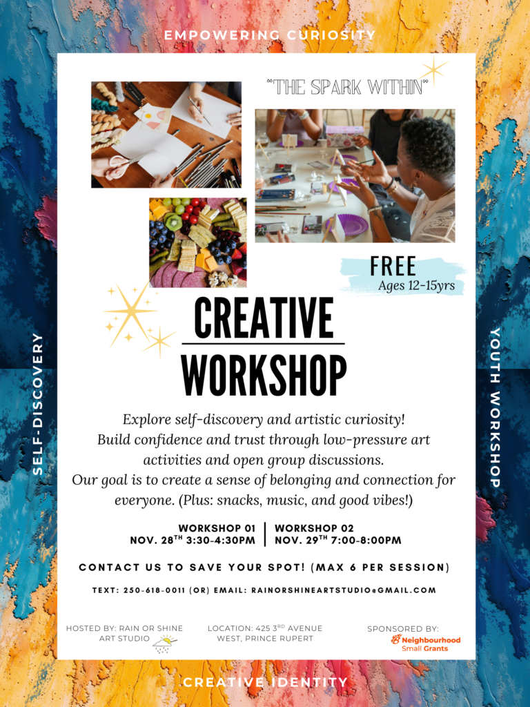 We hosted a couple self-discovery classes for youth. They came for an afternoon/evening of easy going art fun, snacks, and open conversation. I wanted to create a space where they felt comfortable and could be themselves. The most challenging part was to figure out how to advertise and market the workshop, in a way that would be exciting and interesting to youth; and make them want to attend. The goal was to start with the first sessions, with the support of this grant money, and try some more workshops in the new year. I’m hoping through word of mouth, the youth who did enjoy the session, will attend the next ones, and will bring friends and share with peers as well!